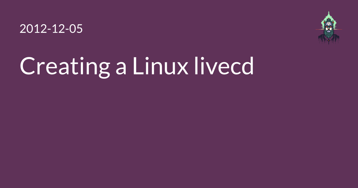 I have tried several methods for creating a Linux livecd, and found several with downsides. I eventually settled on Debian Live under a dedicated Debian Wheezy (currently “testing”, and will be released as 7.x). (I couldn’t make it work under Ubuntu, which is my normal distribution.)