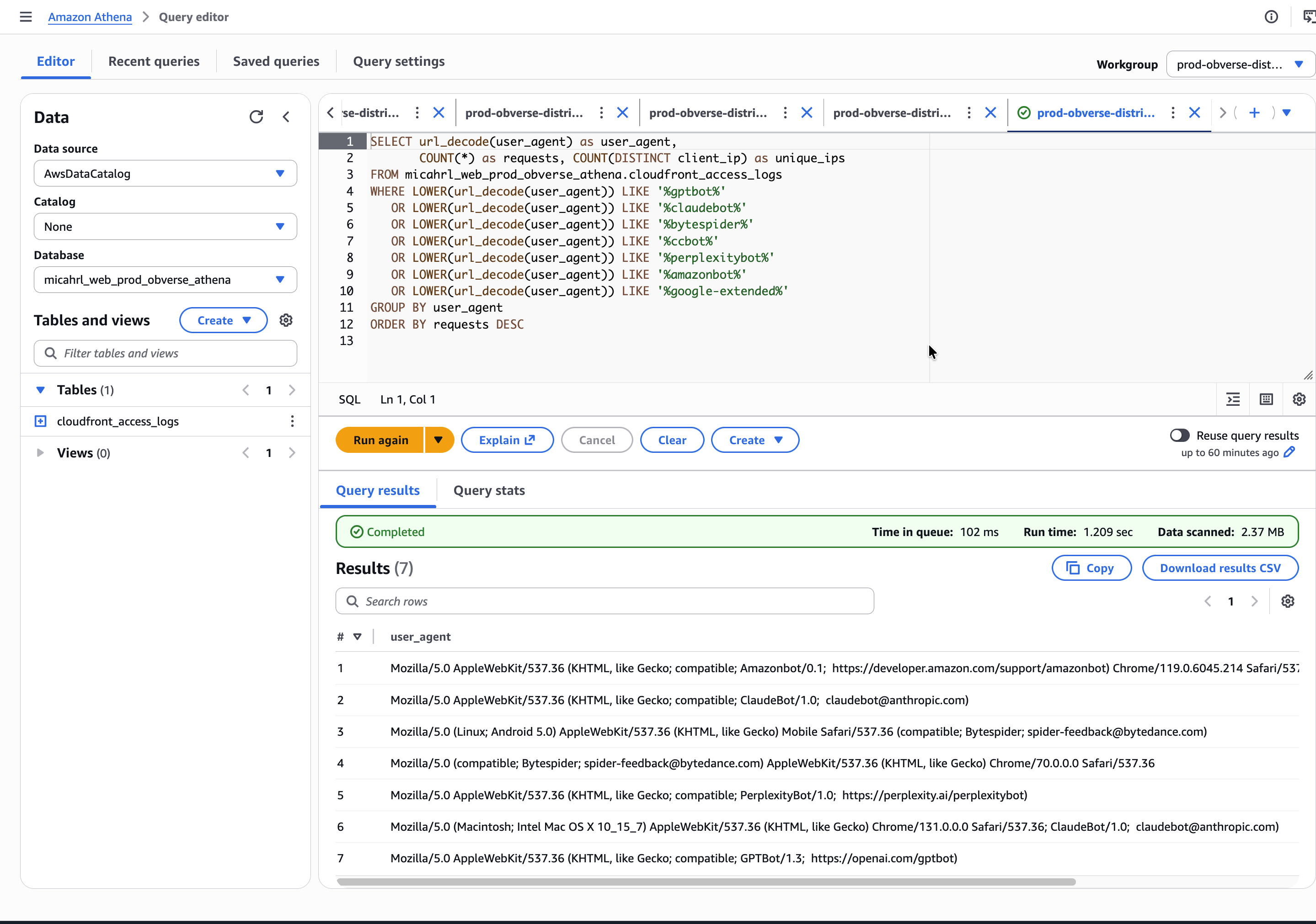 Finally, I can use AWS Athena to query historical logs in a SQL dialect: