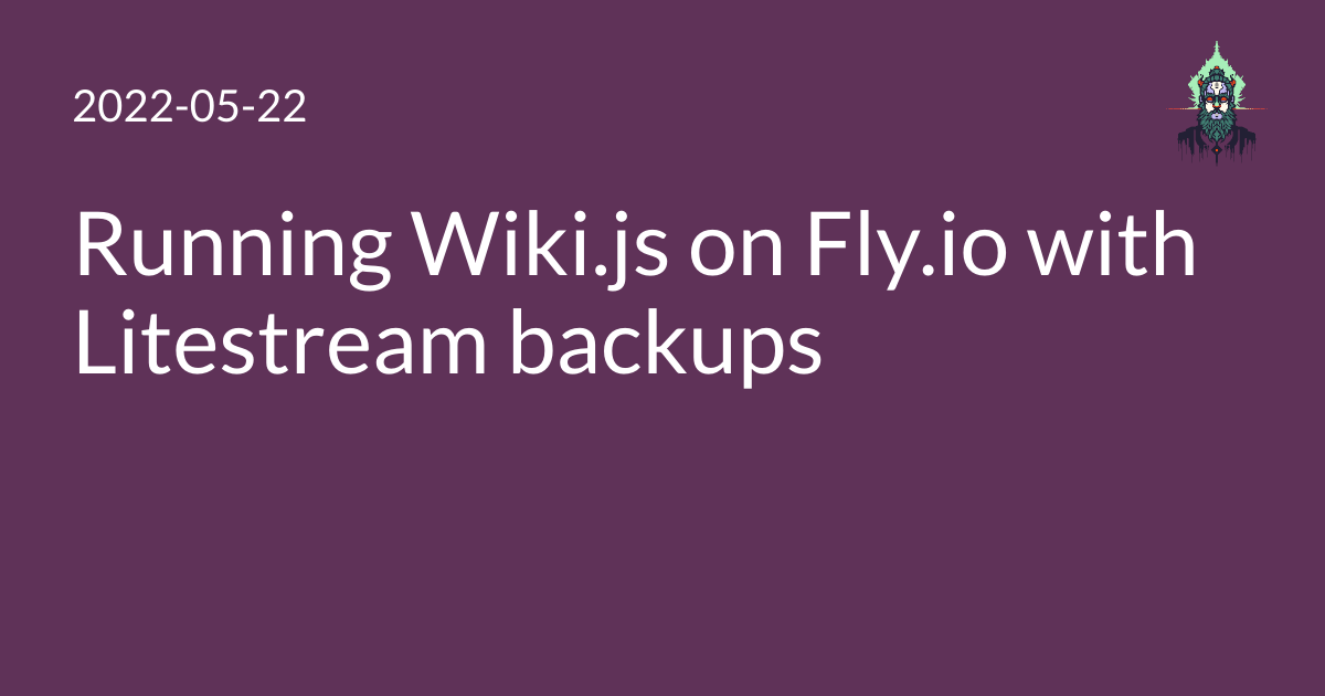 I need to run a wiki for some personal stuff. I created a Docker container that runs Wiki.js supervised by Litestream and running on Fly.io. Here is how I did it.