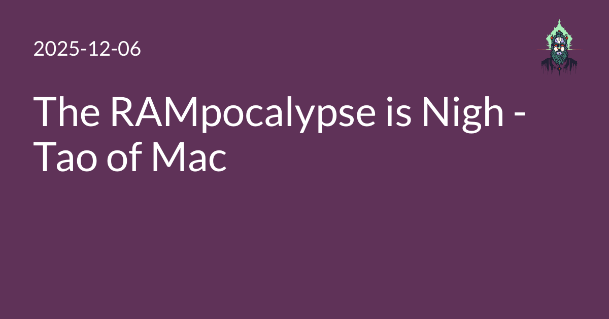 Notes on “The RAMpocalypse is Nigh - Tao of Mac”